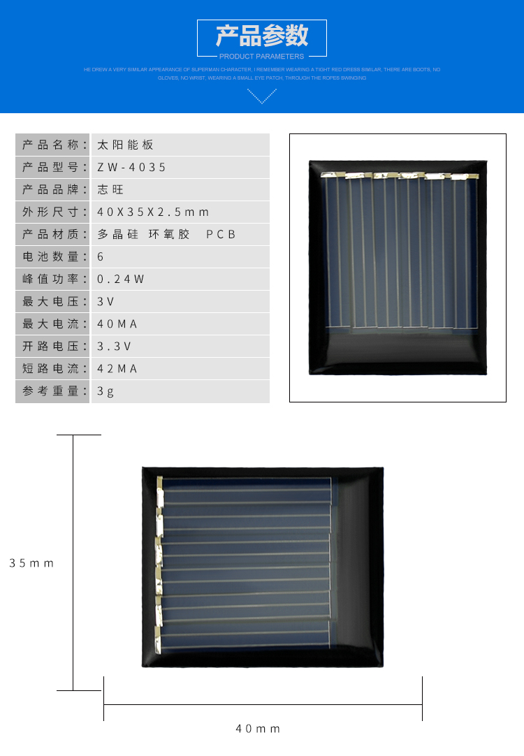 太阳能滴胶板-ZW-4035